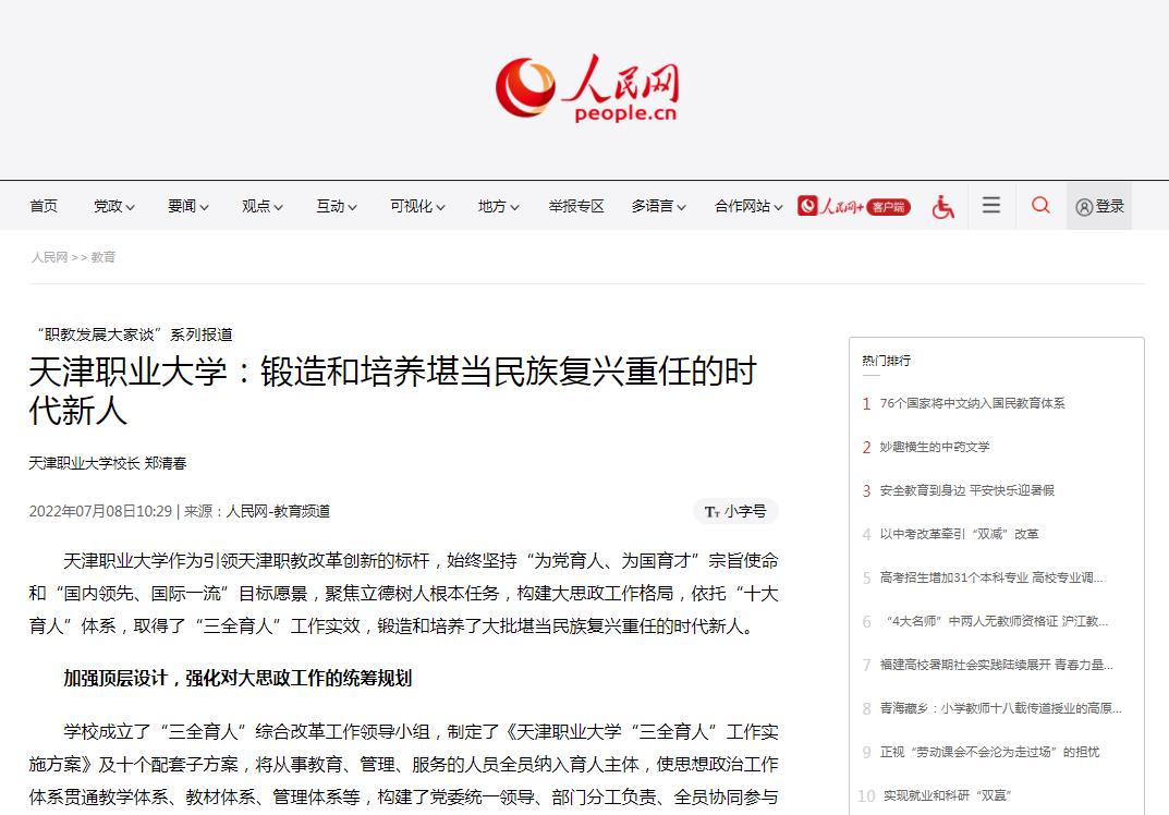 人民網:天津職業大學:鍛造和培養堪當民族複興重任的時代新人