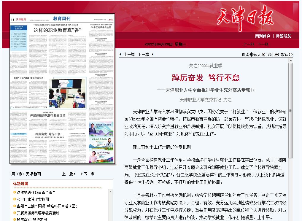 天津日報(11版):踔厲奮發 笃行不怠-天津職業大學全面推進畢業生充分高質量就業