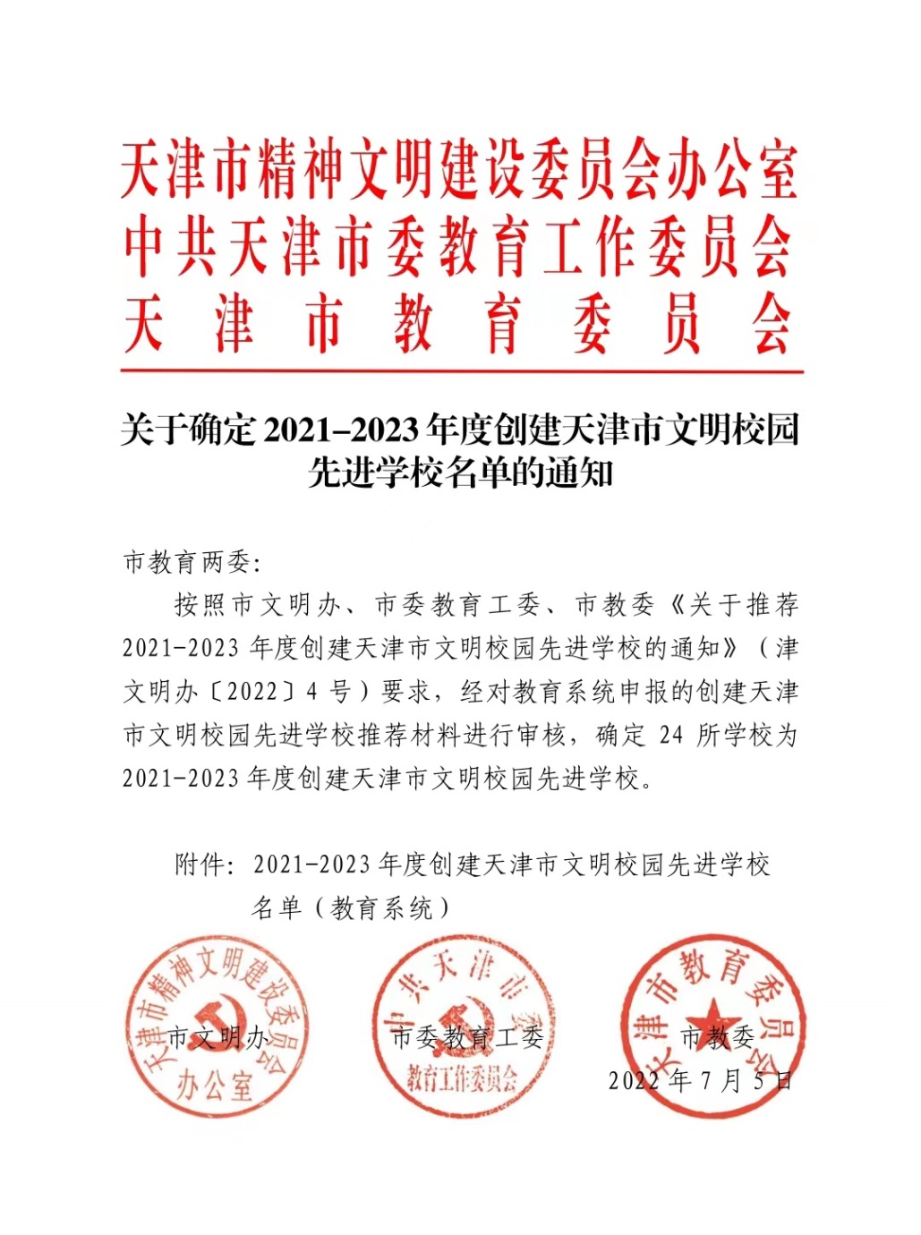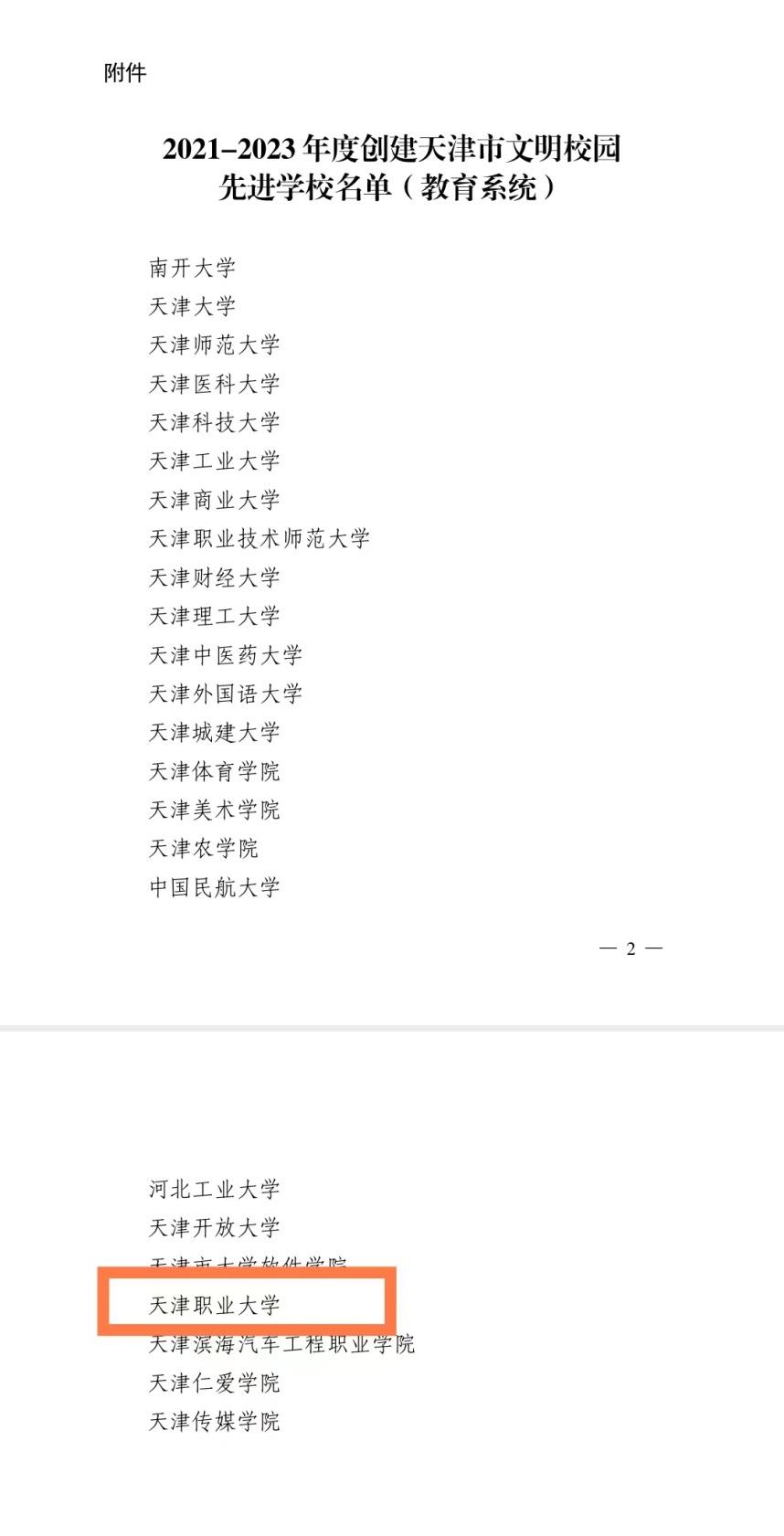 日前,市文明辦、市委教育工委、市教委聯合印發《關于确定2021-2023年度創建天津市文明校園先進學校名單的通知》,天津職業大學獲評2021-2023年度創建天津市文明校園先進學校。
