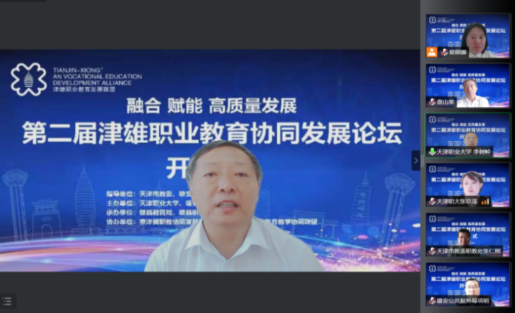 為促進京津冀職業教育協同發展、服務雄安新區建設,2022年7月27-28日,第二屆津雄職業教育協同發展論壇暨辦學質量提升培訓通過線上直播方式成功舉辦。本次論壇是在天津市教委、雄安新區管委會指導下,由天津職業大學與雄安新區公共服務局共同主辦,天津市教委、河北省教育廳、雄安新區管委會、雄縣教育局等政府部門領導出席論壇開幕式并緻辭。論壇由天津職業大學副校長李樹嶺主持,天津輕工、一商校等8所天津職業院校,金年会、雄安三縣、保定定興職教中心等9所河北省院校以及和田職業技術學院、武威職業技術學院等中西部院校共20餘所中、高職職業院校管理幹部及教師線上參會,同時在線觀看講座人數達到2200餘人。