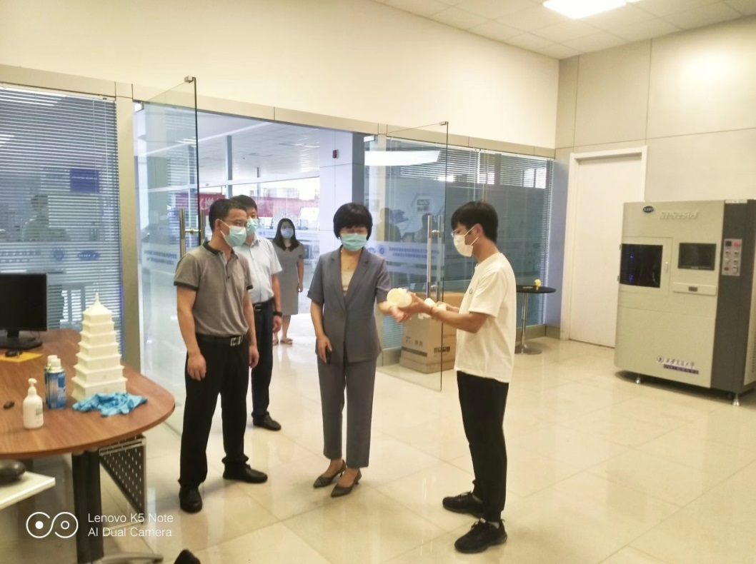 座談會前,周紅蕾部長一行首先參觀了我校汽車實訓樓、增材制造技術推廣中心、機械加工實訓中心和工匠精神體驗館,對我校實訓教學條件建設水平以及産教融合、校企合作成效表示了充分肯定。